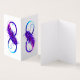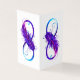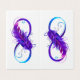 Oneindigheidssymbool met een prachtige veer geschilderd in paarse en blauwe heldere kleuren op witte achtergrond.