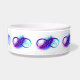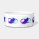 Oneindigheidssymbool met een prachtige veer geschilderd in paarse en blauwe heldere kleuren op witte achtergrond.