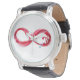 Het oneindige symbool van de continue stroom rode wijn die op witte achtergrond in glas wijnglas stroomt.