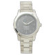 Stijlvol horloge met infinity symbool op metalen achtergrond.