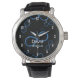 Stijlvol horloge met infinity symbool op zwarte achtergrond.