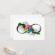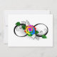 oneindigheidssymbool met regenboogroos op een witte achtergrond.