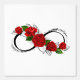 oneindigheidssymbool met rode rozen en zwarte stelen op een witte achtergrond. Ontwerp met rozen. Tattoo-stijl. Gotische stijl. Tribale graphics. Schetsstijl.