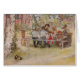 Familie verzameld onder grote vogelboom. Ze zitten op een picknick tafel en hebben hun ontbijt. Carl Larsson, Zweedse schilder.