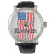 Een Patriottisch horloge met een 'ragged' Amerikaanse vlag en de woorden "Remember" erop.