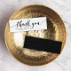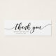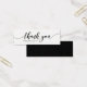 Deze stijlvolle minikaart met de woorden "dank je wel" in zwart schrift is een geweldige trouwcadeautag voor je huwelijksgunsten. Laat de achterkant zwart of verander deze in wit (klik op aanpassen).
