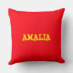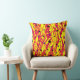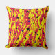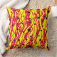 Gooi kussen met chaotische kleurrijke lijnen en sterren, rode en gele tinten