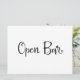 Een eenvoudig en mooi kalligrafie "Open Bar" bord. Dit handgeschreven bord kan worden gebruikt om een moderne stijl toe te voegen aan huwelijksrecepties of elk feest om de alcoholbar aan te duiden.
