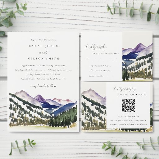 Rocky Pine Mountain Waterverf Landscape Theme Collectie... Het is een elegante waterverf Illustratie van Rocky Pine Forest Mountain Landscape, perfect voor je bruiloft en feestjes op je bergbestemming. Het is zeer gemakkelijk om, met uw persoonlijke details aan te passen. Als u een ander bijpassend product of aanpassing nodig hebt, bericht dan via Zazzle.