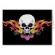 Schopte schedel met schuim, vlammen en roze korrelige harten.