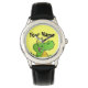 Stomme horloges voor kinderen die kunnen worden aangepast. Een schattig cartoon alligator ontwerp en een plaats om uw eigen tekst op een gele achtergrond toe te voegen. Kinderen zullen van hun eigen persoonlijke horloge houden.