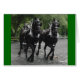 Twee zwarte Percherons in de trede terwijl ze een wagen trekken.