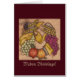 Een hoefijzer van de oogst, dat veel symboliseert, dankbaarheid en gracidegevoel, is verdraaid met linten en geladen met appels, druiven en tarwe. Originele kunst van Gabrielle Watkins c. 2014 Lettertypestijl/grootte/kleur en achtergrondkleur van voor- en binnenkant van de kaart kunnen worden gewijzigd door de knop Aanpassen te selecteren.