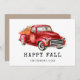 Mooie oogstkaart met waterverf rode truck die pompoenen vervoert.