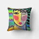 Mijn kleurrijke abstracte portret van een vrouw maakt dit kussen een funky kunstwerk!