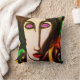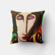 Mijn kleurrijke abstracte portret van een vrouw maakt dit kussen een grappig kunstwerk!