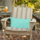 Deze kussen met een accent in de buitenlucht worden getoond met een prachtig Aqua en White Moroccan afdrukontwerp. Pas dit object aan of koop zoals het is. Afbeelding
