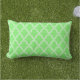 Deze kussen met een accent in de buitenlucht worden getoond met een prachtig Limoen en wit Marokkaans afdrukontwerp. Pas dit object aan of koop zoals het is. Afbeelding