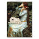 Ophelia (gezeten) door John W. Waterhouse (1898), aangepast om er een witte of crèmekleurige Pekingese in op te nemen. Waterhuis baseerde dit schilderij op de Ophelia van Shakespeare.