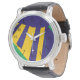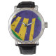 Er is niet te veel ingetogen in dit horloge. Het gezicht heeft een blauwe achtergrond met vetgedrukte gouden strepen en een vleugje groen.