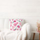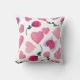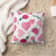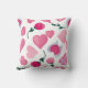 Dit kussen bevat verschillende illustraties van harten en bloemen. De harten komen in verschillende stijlen, waaronder hele harten, gebroken harten, harten met vleugels en harten met linten. De bloemen zijn roze en rood, met groene stengels en bladeren. De achtergrond is wit en de elementen zijn willekeurig verspreid over het afbeelding.