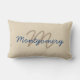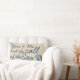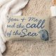 Leuk en stijlvol strandkussen met de uitdrukking "You & Me and the call of the zee" in donkerblauw geaccentueerd met een gedetailleerd blauw zeeschelpenontwerp. De achterkant van het kussen heeft de initiaal letter van uw familie en de volledige naam in het script.