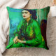 Een door AI gegenereerd portret van een introspectieve vrouw in een groene jurk