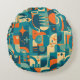 Orange and teal geometric abstract round throw pillow.