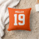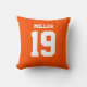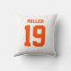 Add a name and number(s) to personalize this custom double-sided orange and white sports jersey inspired accent pillow. It is an excellent gift for a sports fan or athlete. The options to change the color and font sizes are available.