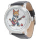 A graphic image of a cute white kitten playing a pink guitar The kitten's expression is playful,