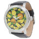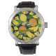 Oranje plakjes en bladeren. Naadloos patroon. Aangepaste achtergrondkleur. Eigen Tekst.