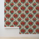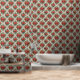 Levendige oranje bloemen op verticaal blauw, tan en witte strepen geven dit behang een moderne, stijlvolle uitstraling.