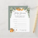 Laat de gasten van het baby shower hun beste gistijnen nemen op de geboortedatum en -tijd, het gewicht en de lengte van de baby! Plaats een stapel bij de ingang aan de gebeurtenis, ga hen rond, of verlaat bij elke plaats het plaatsen. Maakt ook een leuk hoepenbelang voor de moeder-te-zijn, wanneer gecompileerd in een doos of een multomap. Deze summiere natuur is ontworpen om aan te sluiten bij ons Oranje Blossom Honey baby shower-collectie. Deze summiere is geïnspireerd op het design en biedt een groene waterverf, een pot honing en kleine bijenafbeeldingen. Pas de naam en de datum van het baby shower van de moeder onderaan aan aan.