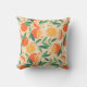 Kussen met een retro vibe. Een motief bestaande uit gesneden sinaasappels, hele sinaasappels, groene bladeren en witte bloesems.