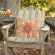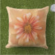 Verkleed je binnen- of buitentuinmeubilair met dit decoratieve, vierkante kussen met het foto-afbeelding van een oranje Collarette Dahlia-bloei op een perzikkleurige achtergrond. Een mooi, bloemig ontwerp! Selecteer kussenstijl en stof.