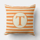 Oranje en beige gestreept monogram Pillow Buitenkussen
