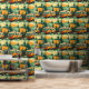 Oranje en Blauwgroen Blue Retro Campers Behang