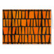 Een cool en funky oranje en zwart-afrikaans stampatroon. Oranje rechthoeken en vierkanten met een pottenachtige textuur op een zwarte achtergrond. Kan ook worden gezien als een oud boekenkarakter-patroon.