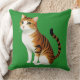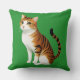 Een schattige poes met opvallende oranje en zwarte strepen zit sierlijk, zijn grote ogen kijken vooruit met een gecomponeerde expressie. De pluizige staart krult elegant achter, contrasterend met zijn witte poten.