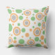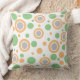 Geometrisch cirkelpatroon met zachte lichtoranje en saliegroene stippen tegen een kraakwit achtergrond op de voorkant. De achterkant is effen lichtoranje van kleur. Fun moderne trendy huisdecoratie. Originele ontwerpen door TamiraZDesigns.