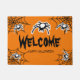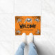 Oranje Halloween deurmat met griezelige spinnen. Spooky Halloween welkom deurmat voor home entry, veranda, hal, winkel, winkel etc. Persoonlijke deurmat met enge typografie. Oranje en zwart interieur met jouw tekst. Feestartikelen, decoraties en accessoires voor uw spookhuis, kantoor of winkel. Grappig welkomstbord tapijt voor veranda, entreehal etc. Personaliseer met aangepaste begroeting. Leuke prop voor kostuumfeesten, huisfeest, trick or treat etc. Verkrijgbaar in klein en groot formaat.