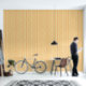 Eenvoudig en elegant ontwerp, verticale oranje lijnen op gele achtergrond