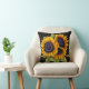 Waterverf mooie grote bruisende zonnebloemen boeket in tinten van heldergeel en verbrand sinaasappel met varen en salie groen gebladerte over een donkerblauwe achtergrond. Houd er rekening mee dat de effen kleur aan de achterkant bewerkbaar is. Selecteer de optie AANPASSEN als u deze wilt wijzigen. Het maakt een elegante chique decoratieve gooi kussen. Perfect om zomer- en herfst herfstaccenten in huis te brengen!