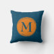 Eenvoudig, minimalistisch REVERSIBLE MONOGRAM Sierkussen in BRIGHT ORANJE en OCEAN BLUE, met een groot monogram in het midden. Er is ook een optioneel Scriptversum - IK KAN ALLE DINGEN IN CHRIST bovenaan en de verwijzing van de Schrift onderaan DOEN - PHILIPPIANS 4:13. Er is een subtiel toning betegeld patroon op de achtergrond. Ook beschikbaar in andere kleuren.