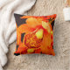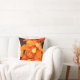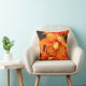 Gooi de kussen met afbeelding van een oranje orchidee aan de voorzijde en het abstracte oranje ontwerp aan de achterzijde.