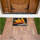 Voor de eilandbewoners! Decoratieve 18" x 24" deurmat die bezoekers begroet met het woord ALOHA en is voorzien van het foto-afbeelding van een oranje bloei van het Plant van de tropische paradijsvogel, ook bekend als een kraanbloem, en afgedrukt op een zwarte achtergrond. Een mooi, bloemig ontwerp! Gebruik binnenshuis of in overdekte entreegebieden.