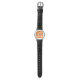 Dit vrouwenhorloge heeft een geometrische vormgeving van driehoeken die vierkanten vormen die lijken op een vogeloog-uitzicht van piramiden.