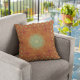 Een prachtige Mandala-ontwerpkussen in heet verbrand sinaasappel, rood wijn, stoffig blauwgroen en sage groen. Het centrale golvende weef Mandala wordt op dezelfde kant geplaatst, waardoor een kleine cirkelpunt en een dwarsmozaïekachtergrond voor de grotere tegel worden gecreëerd. Een oostelijk beïnvloed ontwerp en kleurenpalet.