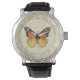 © Lisa Audit / Wild Apple. Een oud beeld van een oranje vlinder. Het afbeelding is omringd door beige gekleurde prints met de vlinder in een witte cirkel. Er is ook tekst die in het afbeelding kan worden gezien.