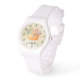 Persoonlijk horloge met een afbeelding van de waterverf van een oranje pompoen met kleurrijke valbladeren en sprigs. De achtergrond is een digitaal afbeelding van een faux parchtextuur die met waterverven wordt gecreeerd. Kunst deco klokgezicht.